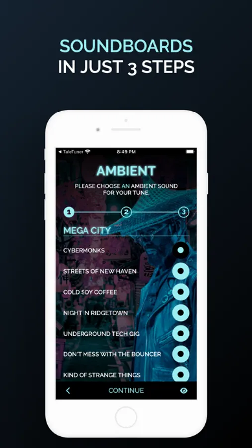 TALETUNER offers you an easy way to create a soundscape for your next roleplaying session, storytelling evening at a campfire or a telling a good nights story...in just 3 steps.
