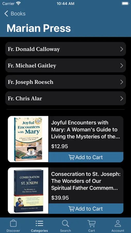 Browse new and classic books from Marian Press, including the latest releases from popular authors like Fr. Donald Calloway and Fr. Chris Alar, along with essentials like the Diary of Saint Maria Faustina Kowalska.