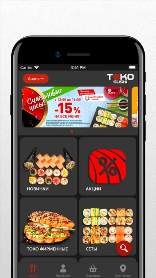 ТОКО SUSHI - это мобильный сервис быстрой доставки вкусной еды. Оформите заказ на дом или офис и привезем его вам в течение часа.