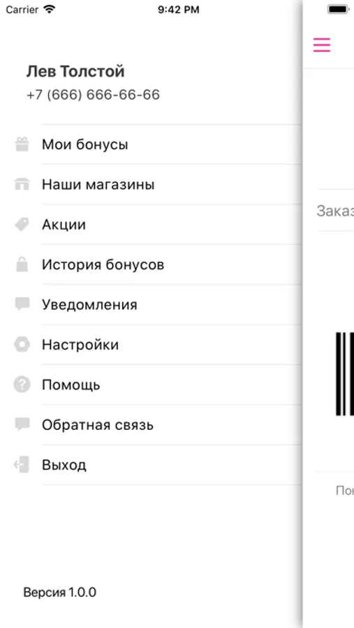 - просматривать баланс бонусных баллов в программе лояльности ;