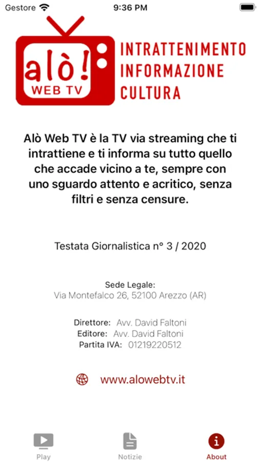 Testata Giornalistica n° 3 / 2020. Direttore: Avv. David Faltoni. Editore: Avv. David Faltoni. Sede Legale: Via Montefalco 26, 52100 Arezzo (AR). Partita IVA: 01219220512