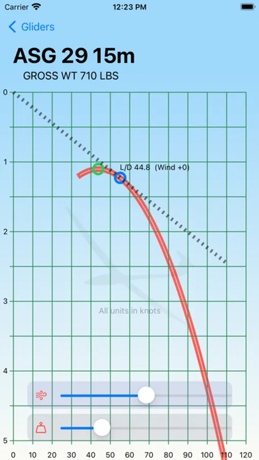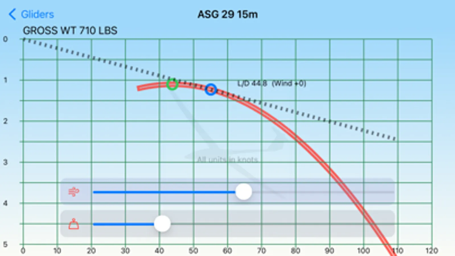 Glider Polar predicts the glide performance of any glider. The user can vary the glider's gross weight and headwind component and immediately see the effect on glider performance. Experienced pilots can use the app to see how water ballast affects the glide ratio and cruise speed. For those new to gliding, the app clearly illustrates the effect of wind and weight on performance.