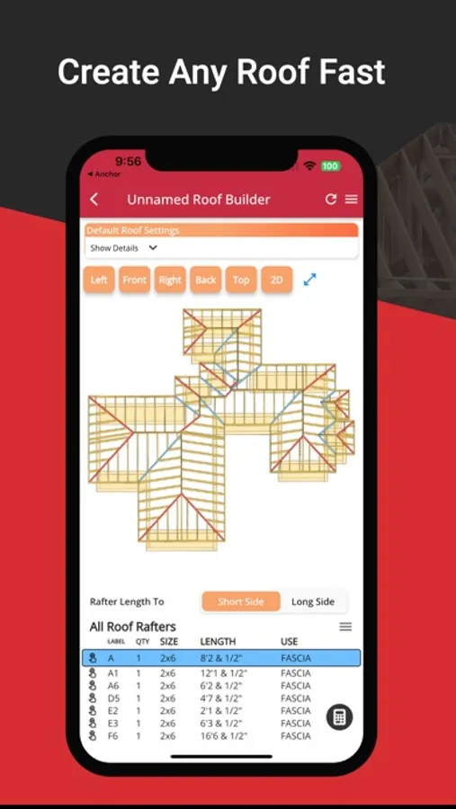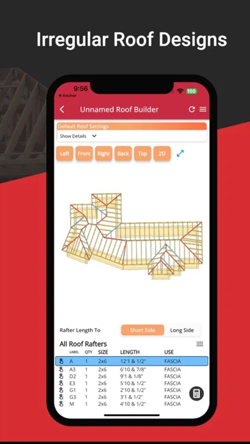 - Full Roof Cut List: Get a detailed cut list for every rafter in your design.
