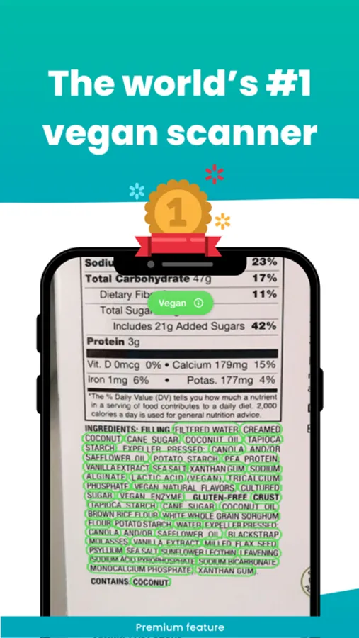 "It's been a great tool since starting my journey! You take a pic of the nutrition/ingredients, and it'll warn you of anything questionable or not vegan."