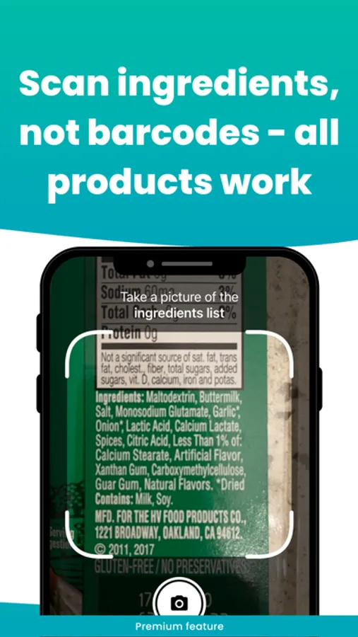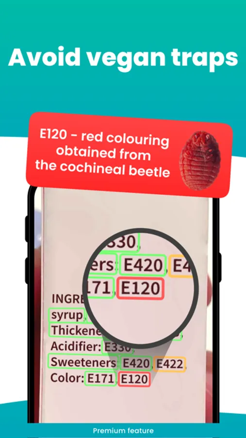 • Vegan scanner that scans ingredients, not barcodes - all products work