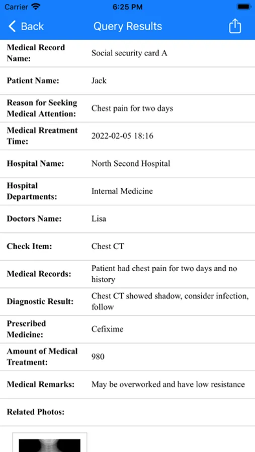 This software can solve the above problems very well. You can take pictures of various test orders or related treatment information and save them to the "Medical Record Manager App". When you need to check, you can quickly find your relevant medical records through the query function, support exporting to other places (such as photo albums), and then you can print or email them to help you find and trace your medical history.