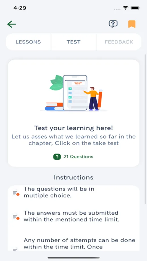 The application allows for easy feedback. The student can provide feedback, raise queries, and connect with the admin for support. Prompt and quick responses to queries will be given and timely notifications on exams, lesson plan, and learner progress will be provided.
