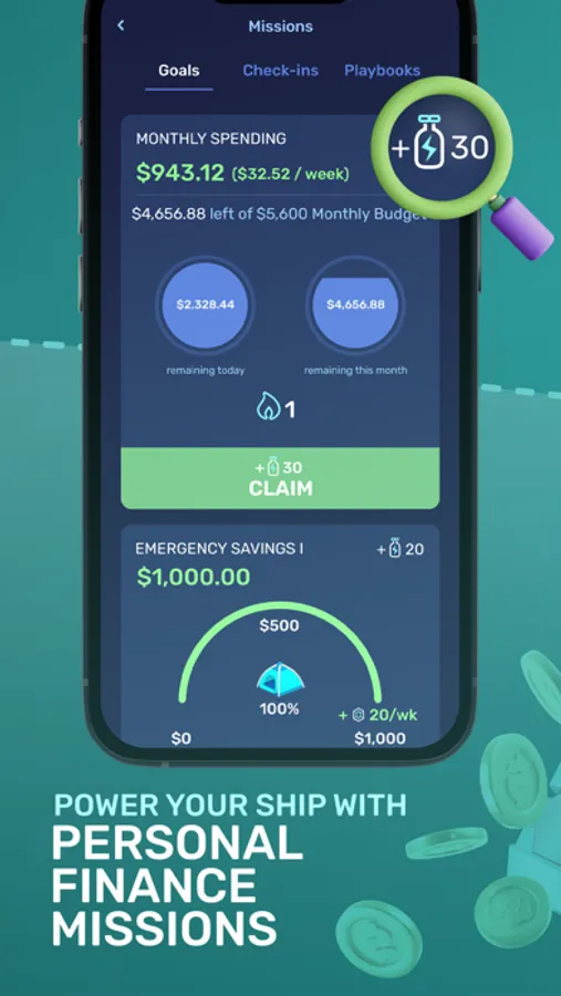 Goodbye to boring and pointless budgeting. Say hello to weekly and monthly budgeting powered by analytics & simulations, and visuals to empower you and help you stay on track. Hit your spending goal to supercharge your ship!