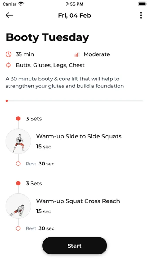 App also uses Apple Health to track energy burned and heart rate during a workout session, if an Apple Watch is used.