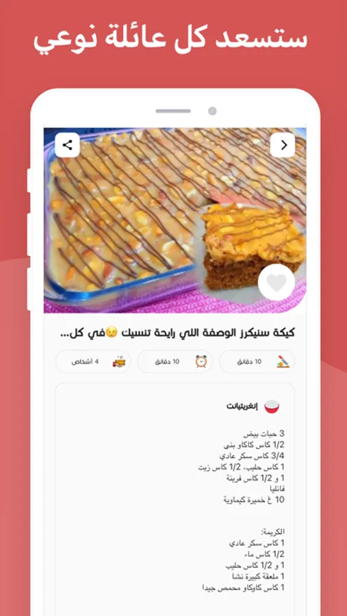 - إمكانية مشاركة الوصفات عبر مواقع التواصل الإجتماعي مثل الواتساب و فايسبوك