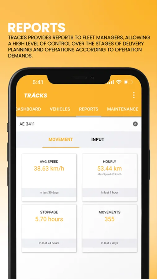 • Driver behaviour and alerts on over speeding, harsh braking, turns and more.