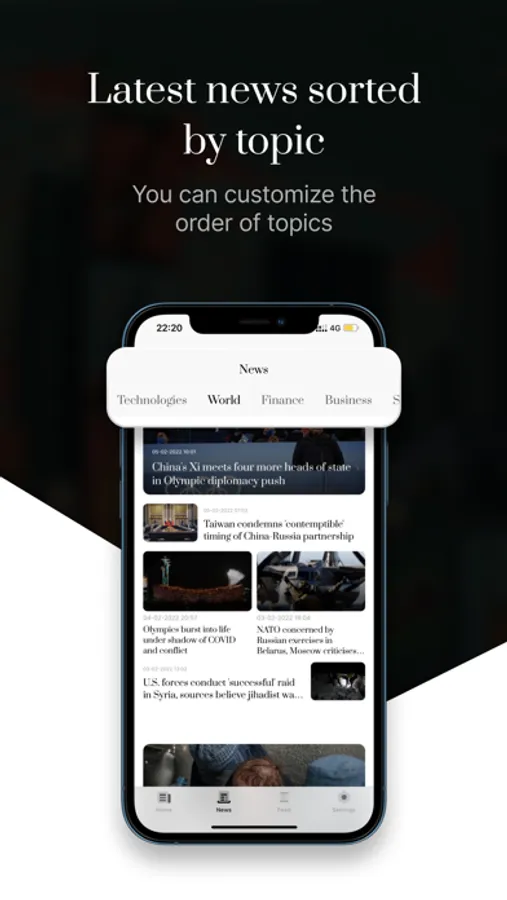 - Newsfeed with the latest and up-to-date news divided into categories.