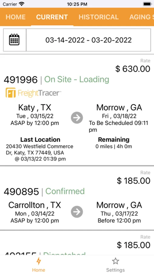 - View of all Open shipments with rate information, real-time location statistics and tracking map via FreightTracer