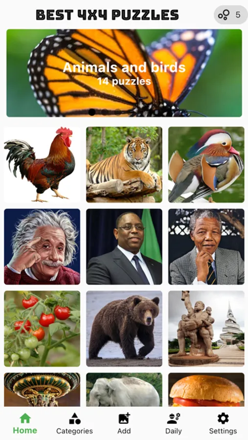 The 4x4 animal puzzles mode allows you to select an animal and solve the puzzle with as little movement as possible. The puzzle images are of good quality