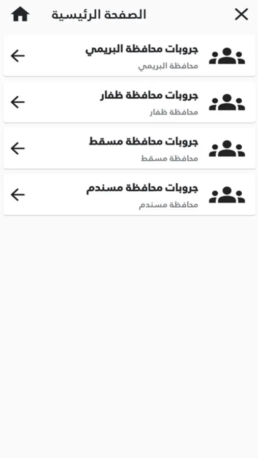 .. التطبيق ينظم الجروبات حسب المحافظات