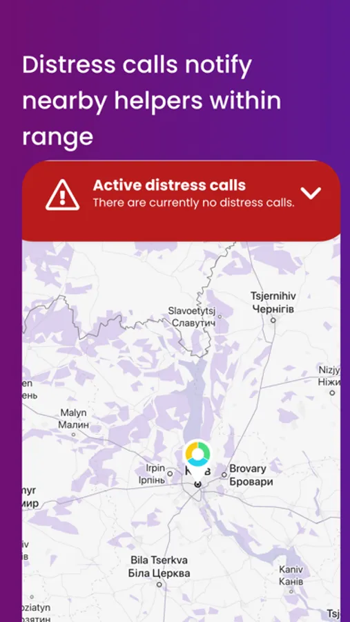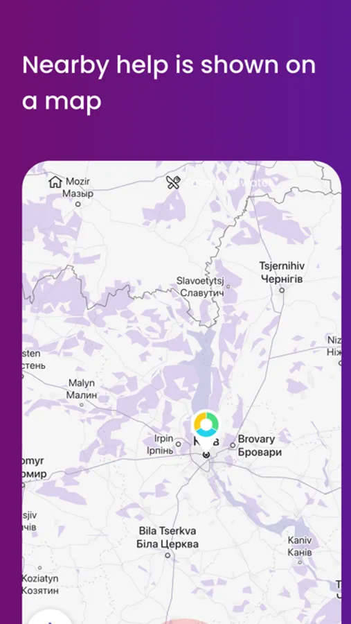 - nearby help is shown with colored pins on Google Maps