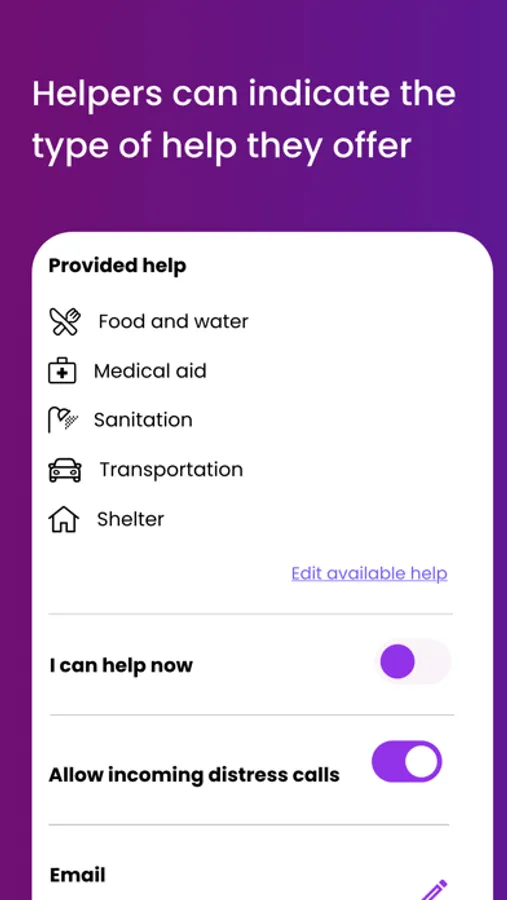 - helpers can indicate the type of help they can provide