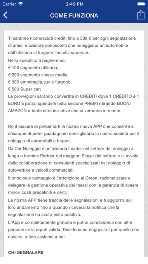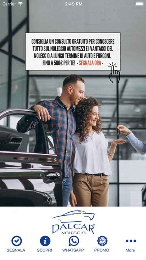 Grazie alla mia applicazione gratuita potrai guadagnare semplicemente segnalandomi amici e conoscenti che vogliono Noleggiare auto e furgoni! Tramite la mia APP potrai tenere traccia delle segnalazioni, verrai aggiornato sul loro andamento fino a quando riceverai la notifica che puoi ritirare il tuo compenso. L'App è completamente gratuita e potrai condividerla con altre persone se la reputi valida. Sono veramente entusiasta di vederti nella mia rete di segnalatori per lavorare assieme e guadagnare assieme. Mi presento sono Fabio D'Alessandro e ci distinguiamo per la Professionalità e la competenza nel nostro settore.