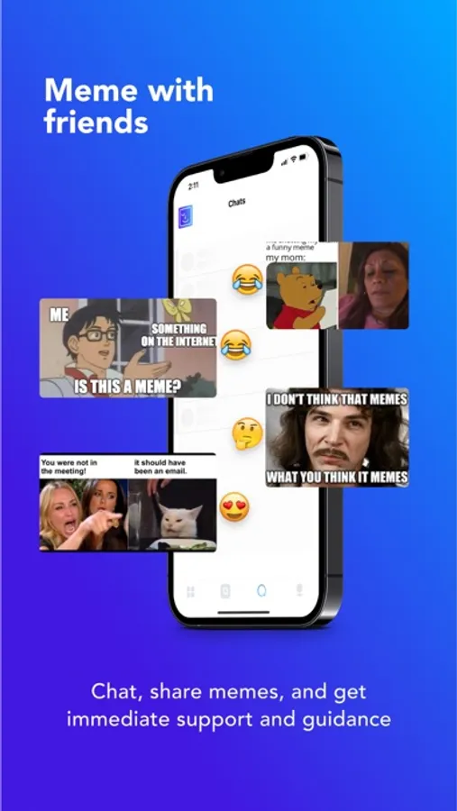 With our gamified meme-based app, there’s no boring journaling, checklists, or judgment if that’s not your jam. We make it easy and fun to build positive mental health habits into your daily routine and make your well-being a priority. Life can be chaotic, and nobody got time for that! Get your well-being glow-up and slay your day with our diverse, relatable, and viral database of memes.
