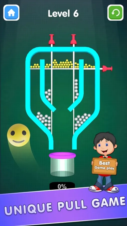 Pull the Pin should be simple: gravity pulls the balls down towards the pipe. But then pins are in the way! Can you help out and flip away the pins and get the balls to where they are supposed to be?