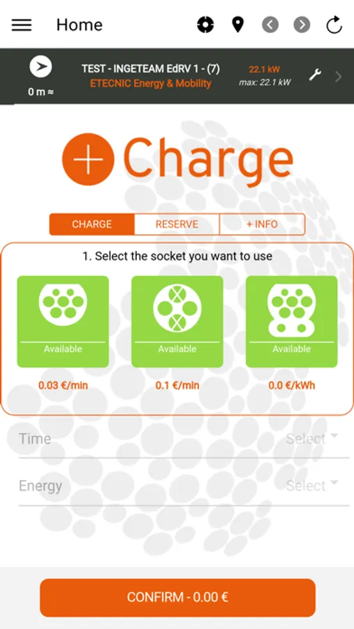 PlusCharge shows the location, information and status of the different chargers, allows the customer to activate them and start a charge, graphically showing the process in real time.