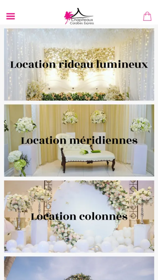 Pour venir compléter la décoration de vos tables, pensez également à sublimer le lieu de l’événement ! Rideaux lumineux, méridiennes, trônes royaux, colonnes et autres types d’articles sont disponibles sur notre appli Chapiteaux Caraïbes Express ! Réservez-les vite !