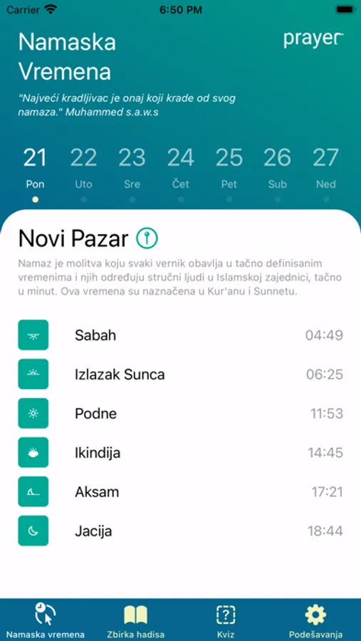 Prayer bi trebao biti vaš pomoćnik u veri, aplikacija kojoj se uvek možete obratiti za dodatno pitanje, aplikacija kod koje možete potražiri odgovor i u kojoj možete naučiti nešto novo.