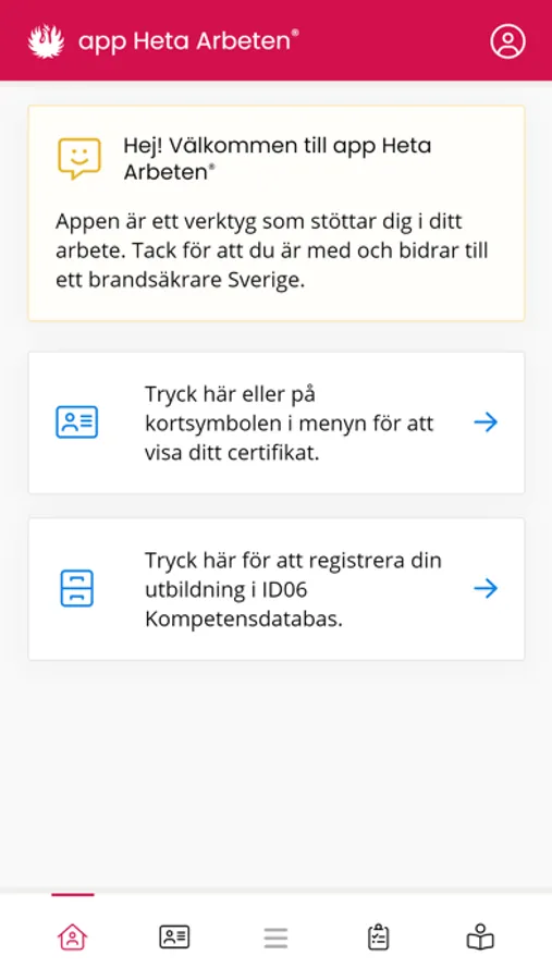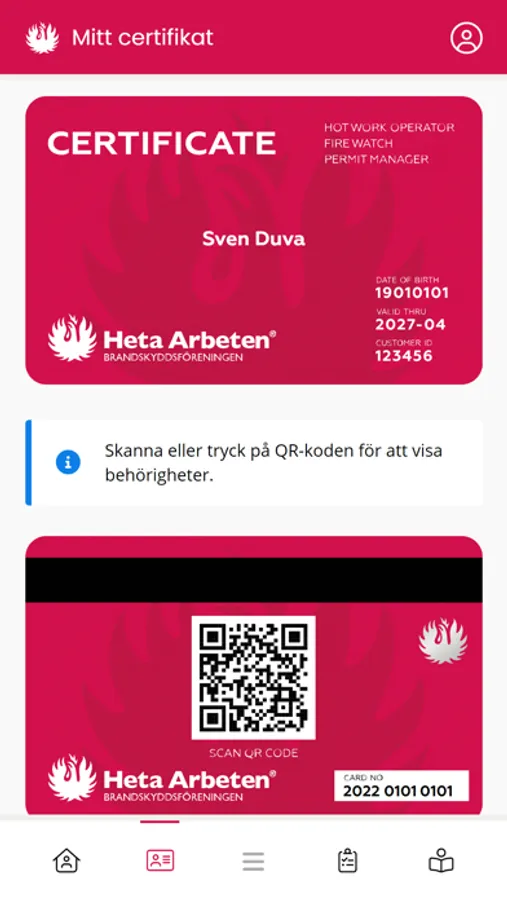 App Heta Arbeten® är framtagen som ett stöd för dig som utför brandfarliga heta arbeten fungerar som ett verktyg i ditt arbete. I appen kan du styrka din behörighet med ditt digitala certifikat, skriva digitala tillstånd och hitta svar på frågor kring brandfarliga heta arbeten på tillfällig arbetsplats. Här kan du också registrera din behörighet Heta Arbeten® i ID06 Kompetensdatabas. Detta oavsett vart i landet och hos vilken av Brandskyddsföreningens arrangörer du har gått behörighetsutbildningen.