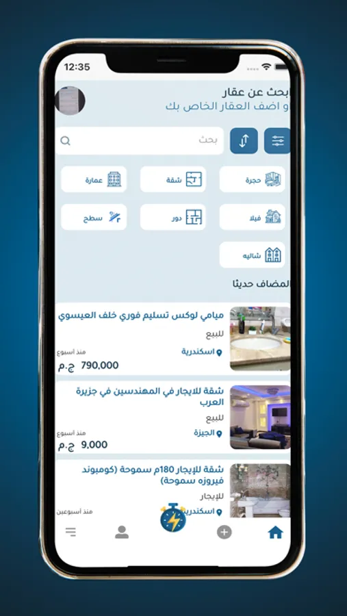 البحث عن العقارات باستخدام عوامل تصفية مثل نوع العقار و المدينة و المنطقة و المساحة و السعر