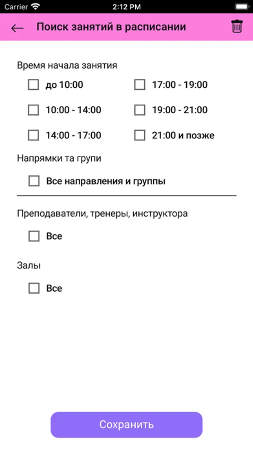 - бронировать места на занятиях;