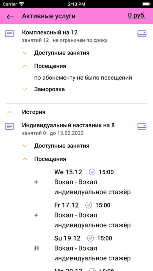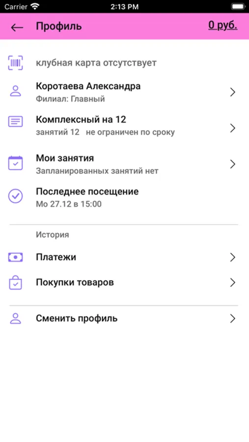 - следить за своими абонементами, посещениями и платежами;