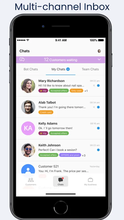 My Business uses chatbots to engage with your customers over popular business messaging channels.