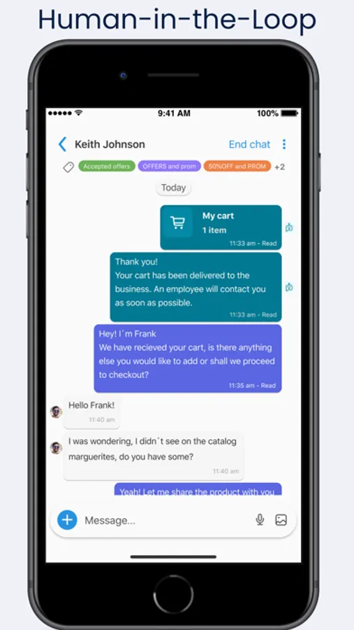By means of QR codes, media advertisements or web sites, your customers can be directed to establish a contact with your business using their own native messaging app such as Google RBM, Google Business Messages, iMessages for Apple Business Messages.