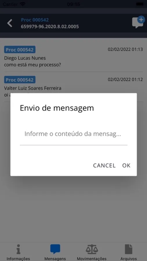 Esta integração permite visualização de seus processos, envio de mensagens diretamente para o advogado responsável pelo seu processo e o envio de documentos e imagens necessários para dar continuidade a seu processo.