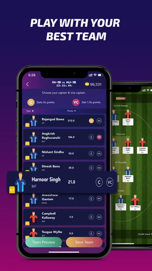 Pick your sport, select your favourite team/club and draft a team of real-life players by staying within 100 credits.