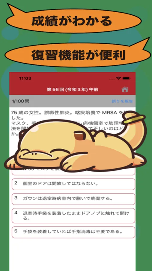 本アプリはサクサク動きます。 また復習機能があり、効率的に勉強できます。 たくさんの問題が解けます。間違えた場合は記録として残り、問題文の上部に表示されます。さらに間違えた問題だけをまとめて解ける機能を搭載。復習時はランダムでも解けます。ホームに戻ったとしてもつづきから問題を進められます。解いたあとにバッチリと要復習が下部に表示され、こちらは手動で変更可能なため、たまたま正解したものを要復習に切り替えることができます。反対に、正解したけれど不安な問題は要復習にすることで、あとからの解き直しに便利になります。図は拡大できます。問題を解かなくても次の問題にどんどん進めるため、戻って解き直すことが可能です。最適な機能を搭載しており、有効活用できると思います。みなさまの温かいレビューをお待ちしております。