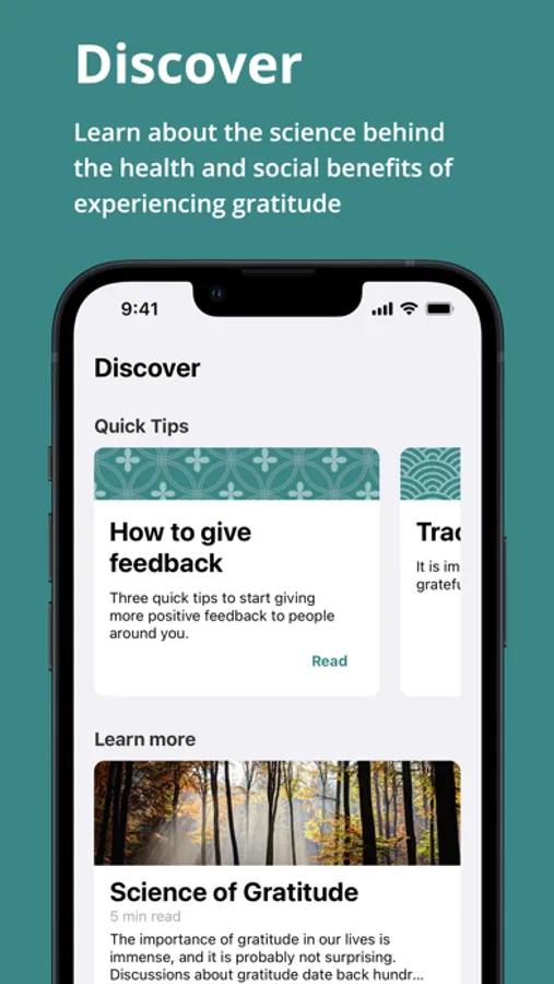 Learn more about gratitude and understand the underlying mechanisms. The Grateful Mind app can be a great start to discover more about gratitude with quick tips and longer articles.