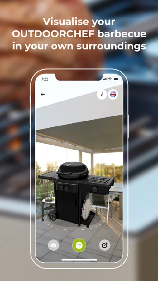 With Outdoorchef 3D, you can visualise Outdoorchef barbecues as a 3D model virtually in your own home. Find out which model you like best or fits best in your garden, balcony or terrace, thanks to the latest AR technology. Also, take pictures of your Outdoorchef barbecue directly in the app and share them with your friends on all platforms. True to the motto: maximum enjoyment with minimum effort!