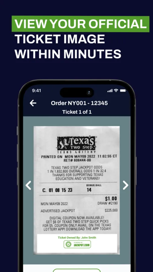 * SEE YOUR TICKET IN MINUTES – After you pick your lucky numbers for your favorite draw, you’ll receive a confirmation email that your ticket has been bought, and a scan of your lottery ticket will be uploaded to the app for you to see almost immediately.