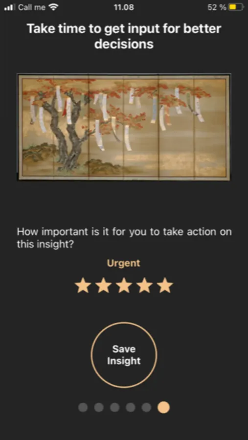 The app has been designed as a compass for personal leadership – for mapping resources in and around yourself that will help you make better decisions and act on them in a way that comes easily and naturally.