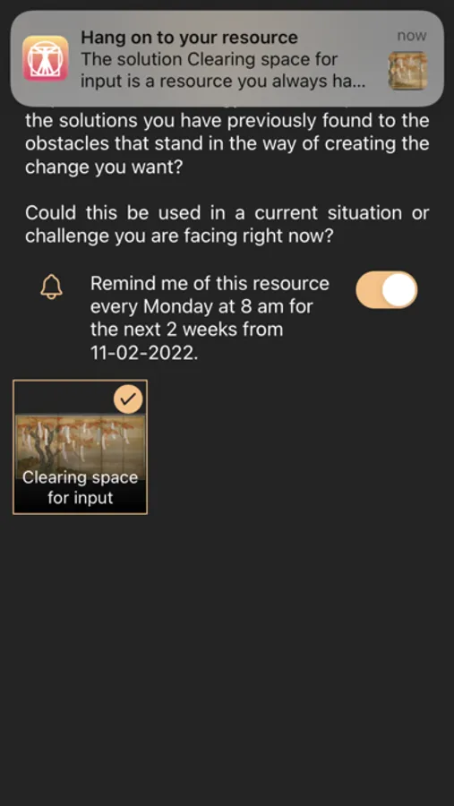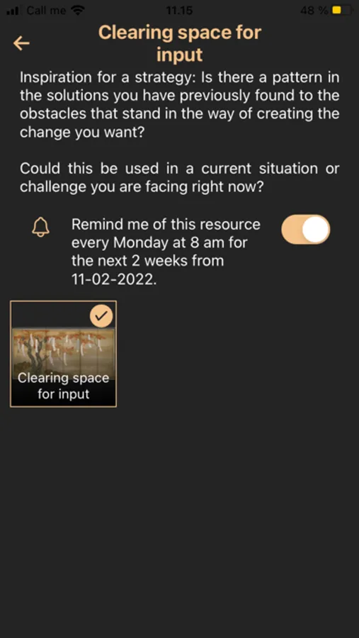 • re-connect with the resources and resourceful mental states, you have mapped in the app in less than 10 sec.