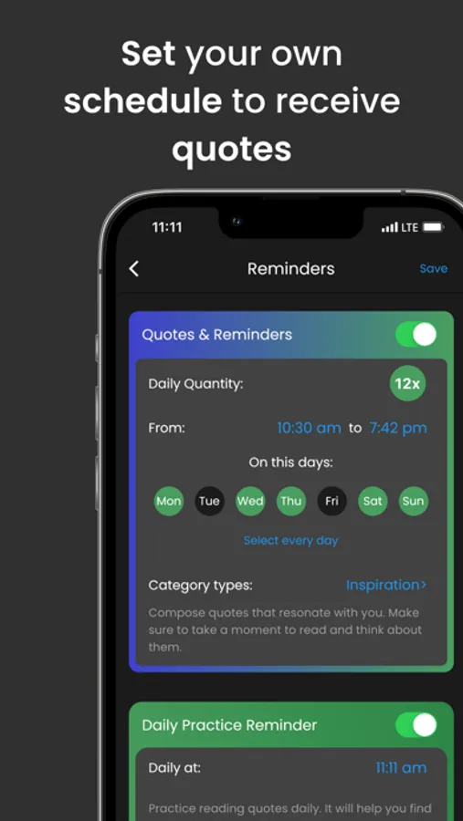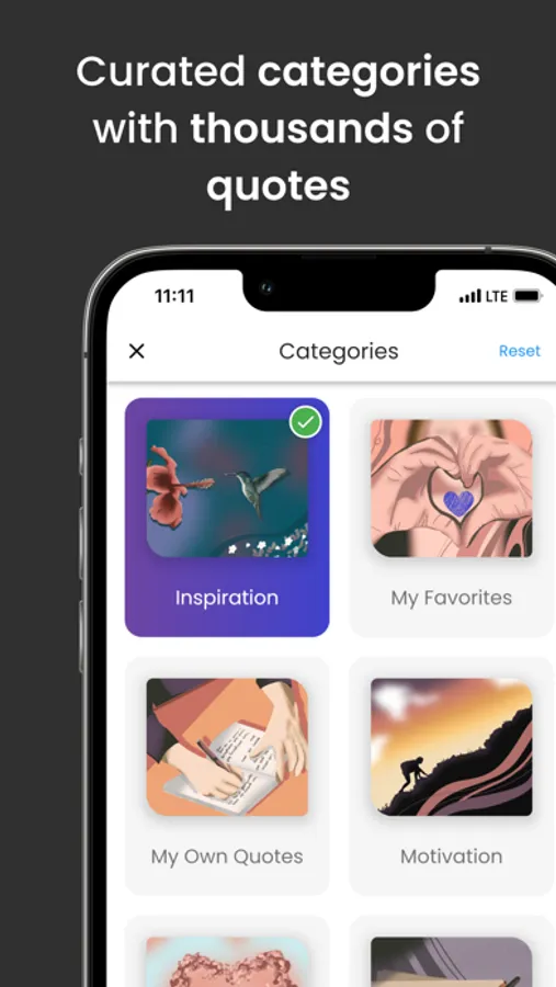 · Curated categories with quotes that resonate with you. Including love & relationships, abundance, prosperity, gratitude, confidence,