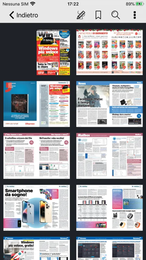 Volta pagina utilizzando solo il tocco delle tue dita, ingrandisci foto e testi, gira lo schermo del tuo device per visualizzare due pagine affiancate.