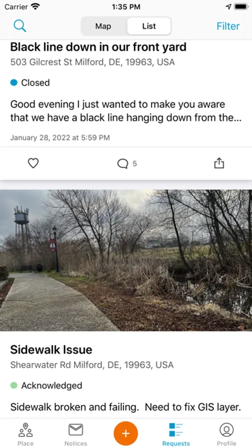 Welcome to MyMilford, the official app serving the residents and visitors of our River Town, Art Town, Home Town: Milford, Delaware! Powered by GPS capability and built to make communicating with city government and staff easier than ever, our app’s design and purpose is to allow you to report non-emergency issues, such as code and building violations, potholes, drainage problems, street light malfunctions, garbage and recycle concerns, animal control issues and more, quickly and easily. You can even snap a photo in real time and conveniently include it with your request. Each request category is assigned to the staff members most appropriate to efficiently handle whatever your specific need may be. Upon receiving and reviewing your concern, the respective city department will address the issues at hand in a timely manner and will communicate with you directly, via the app. You can also follow our progress on your problem and be updated throughout the process of correcting and closing your request. Download and begin using this free service today and thank you for helping make Milford the best place to live, work and play in southern Delaware!