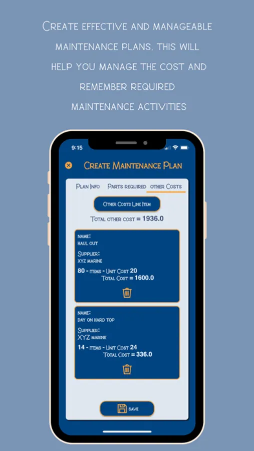 Our maintenance management provides you with an unrestricted ability to track and manage parts, inventory against each vessel, boat or in a generic location. It will help you track your planned maintenance activities such as yearly checks on anodes, trailer maintenance, engine services etc etc. highlighting parts to be purchased, additional costs such as haul out, thus giving you the ability to plan and budget for future maintenance cost. We also provide the ability and functionality to record unscheduled maintenance activities and where parts have been used from inventory we automatically reduce your inventory quantity based on this usage.