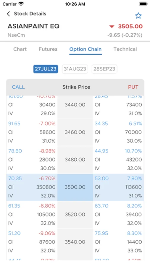 • View Option Chain, Option Greeks, OI and IV data in Option Chain