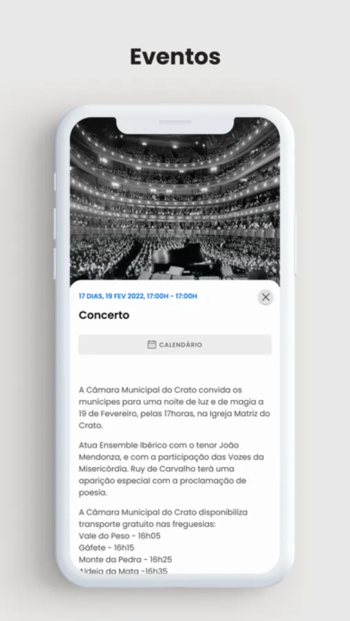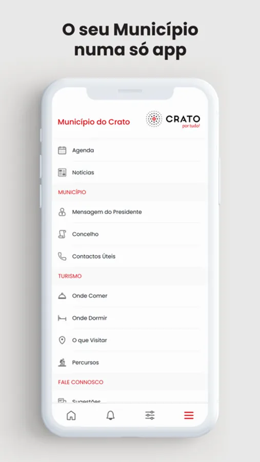 Application that aims to promote news and events, spread of information and tourist and cultural promotion of the municipality of Crato. The group of features will soon be available and the municipality will be able to communicate and receive direct feedback from the citizens, by providing some services.