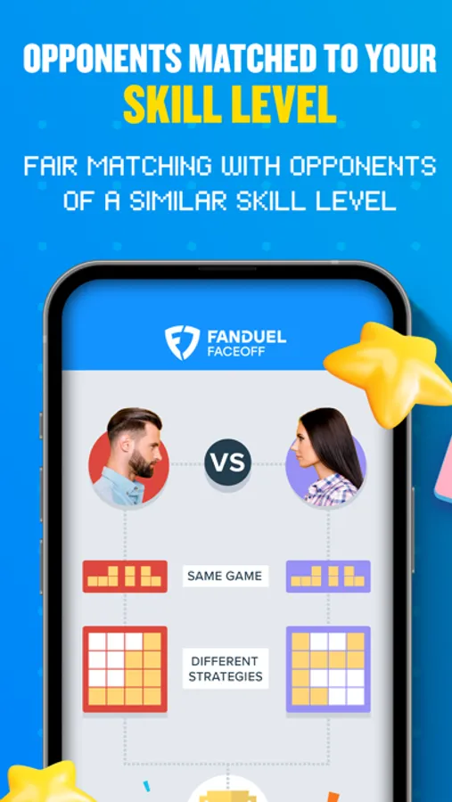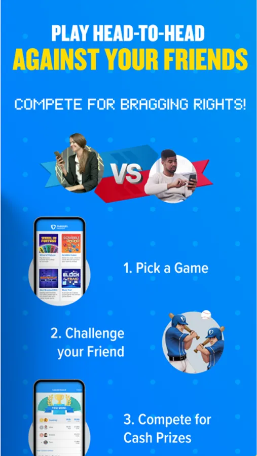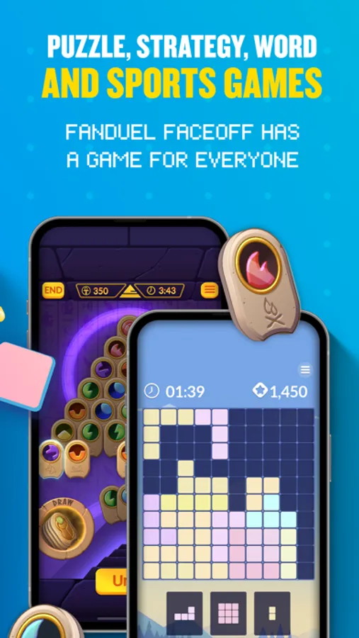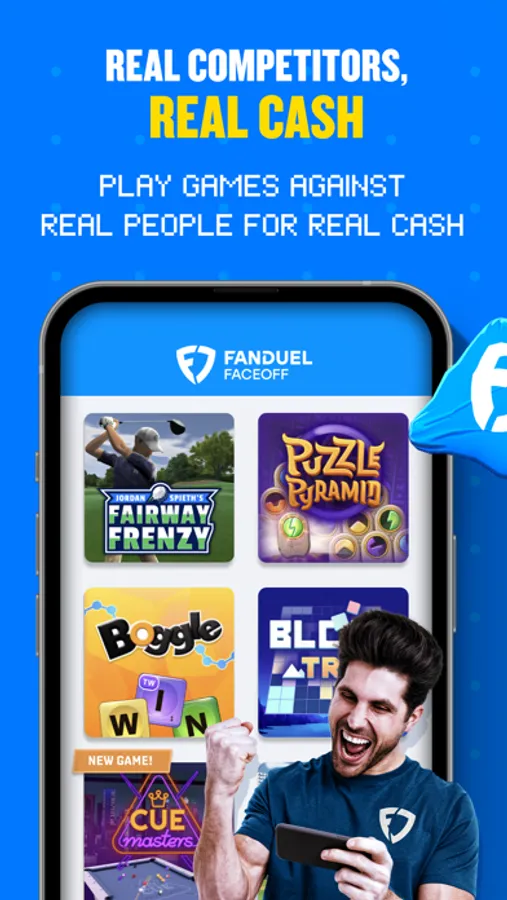 Welcome to FanDuel Faceoff: the app that lets you play games against people for REAL CASH! Practice for free to sharpen your skills or compete for cash prizes with contests starting as low as 60¢. Games are fun, quick and available anywhere, anytime. You can even compete with your friends in Challenge-a-Friend mode!