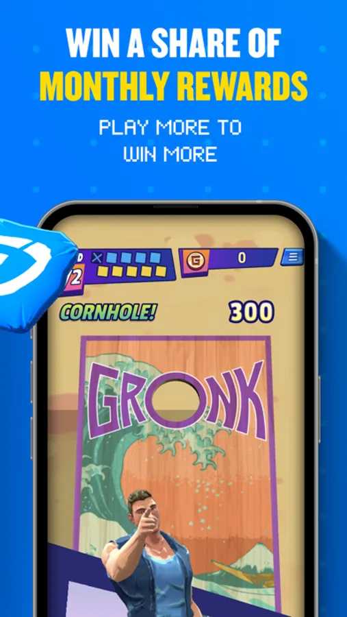 Cornhole with Gronk! Team up with NFL legend Rob Gronkowski and aim for big scores by sinking bags, knocking off opponents' bags, and scoring combos in this thrilling twist on Cornhole.