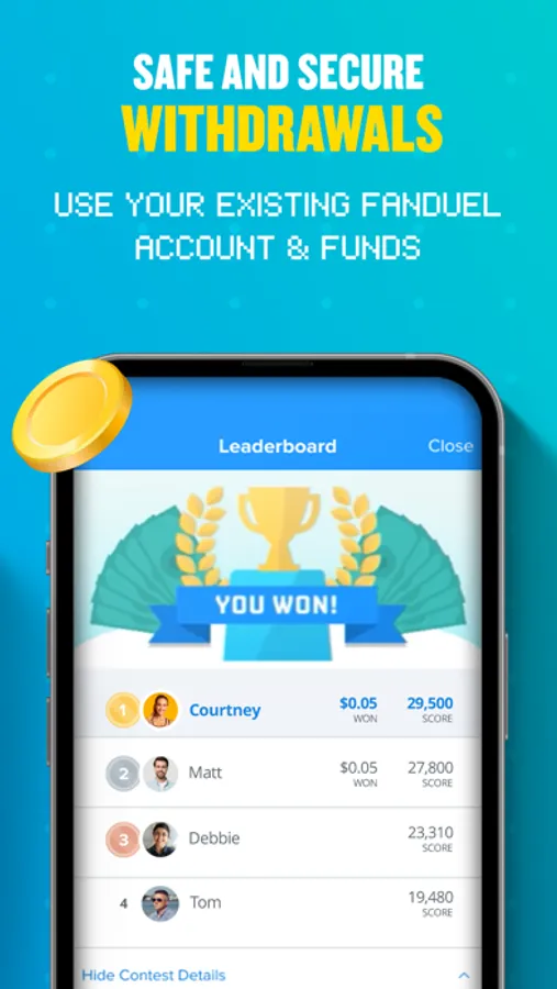 Before you’re done celebrating, your winnings are already in your FanDuel Wallet. Roll them into your next game, save them for later, cash out or put them towards your next FanDuel Daily Fantasy lineup. With FanDuel Wallet, FanDuel Faceoff cash prizes are secure and available for quick withdrawal.